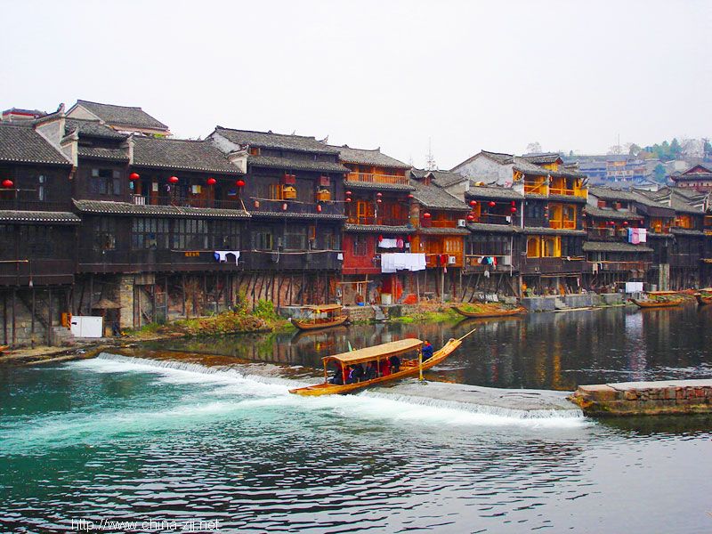 湖南鳳凰古城始建于清康熙四十三年〔1704年〕,歷經(jīng)300多年的風(fēng)雨滄桑,古貌猶存,F(xiàn)東門和北門古城樓尚在。城內(nèi)青石板街道,江邊木結(jié)構(gòu)吊腳樓,以及朝陽(yáng)宮、古城博物館、楊家祠堂、沈從文故居、熊希齡故居、天王廟、大成殿、萬(wàn)壽宮等建筑,無(wú)不具古城特色。古城以古街為中軸,連接無(wú)數(shù)小巷,溝通全城。古街是一條縱向隨勢(shì)成線、橫向交錯(cuò)鋪砌的青石板路,自古以來(lái)便是熱鬧的集市,如今更加生機(jī)勃勃。鳳凰古城的標(biāo)志性建筑之一虹橋,原名臥虹橋,歷史悠久。鳳凰古城北門城樓本名“碧輝門”,采用紅砂條石筑砌,既有軍事防御作用,又有城市防洪功能,是古城一道堅(jiān)固的屏障。鳳凰古街兩邊建筑飛檐斗拱,店鋪中陳設(shè)著琳瑯滿目的民族工藝品,濃濃的古意古韻,透出古街深厚的民族文化底蘊(yùn)。