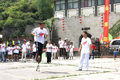 張家界高花燈亦稱高皇燈,是流行于永定沅古坪一帶富有民族特色的舞蹈。表演時,12人至24人不等。配有鑼、鈸、嗩吶、鼓等樂器。每人手中拿一盞紙扎燈籠,內點蠟燭兩根,頂扎一木偶像,用五色紙剪成戲文故事如“八仙” 、“瓦崗寨”,“梁山英雄 ”之類。高花燈表演有一套程式,要求東起西落,進一個“半邊月”,出一個“月團圓”,舞個“太極圖”。亦可進民房表演,叫“愿燈”,多為祝福、還愿或為某家喜事湊趣。打吆喝、打口哨則只能到戶外表演,叫“眾燈”,是讓大家看的。其形式又分民燈、戰(zhàn)燈。前者表演 古代先民的遷徙、繁衍、勞動、生活;后者表演打仗破陣。隊形變化有“織籬笆”、滾柱頭”、“十八斗”、“螺螄轉頂”、“八卦陣”、“過天星”、“一字長蛇”等二十余種。如破“象棋盤陣”,主人插三十二根香,擺成棋盤陣,表演時,主人舉紅傘,玩燈者舉黑傘,從河道進,將眾“子”一一吃掉(即踩香),這是斗智的競賽。只見燈火如流星般穿插舞蹈 ,旁邊配以龍燈互舞(配龍玩燈,是高花燈的主要特點之一),那激起的鑼鼓聲、吆喝聲、口哨聲,掀起有節(jié)奏的聲浪,熱烈而歡快。 張家界高花燈發(fā)祥于張家界市永定區(qū)沅古坪鎮(zhèn)等地區(qū),與沅古坪地區(qū)接壤的沅陵、桃源、慈利等周邊區(qū)縣也有少量玩高花燈的習慣。 高花燈的燈代表著光明幸福,12個燈表示12個月,月月平安無事。每年春節(jié),每個村寨都要操練一班高花燈,辭舊迎新。制作時,藝人用竹篾和紙扎糊成12或24個燈籠,在燈籠下加上一個長柄燈托,并在燈籠上扎上五顏六色的“故事”,如“八仙”、“耿氏送子”等。夜晚,在燈籠里點上木油臘燭,一人舉一個燈籠,邊舞邊組成多種隊形。一眼望去,流光閃爍,尤如銀河戲舞。 張家界高花燈不但為本鄉(xiāng)本土的觀眾所喜愛,而且受到海內外朋友及國際友人的高度贊賞。因為它是中國古老的民間舞蹈代表,它以自成體系的記譜方法,延繼著中國舞蹈的血脈,以其悠久的舞蹈歷史和多元文化特征,被舞蹈界認為是“中國舞蹈歷史上的活化石”,極具學術研究價值和很高的審美價值。已列入全省第一批非物質文化遺產(chǎn)保護名錄。 高花燈相傳起源于東漢章帝初年,時“ 中蠻”覃兒健在澧水中下游舉義反漢,與漢軍“戰(zhàn)于洪下”(相傳為今大庸紅土坪,待考),洪下“蠻人”用火 把跳舞為義軍吶喊助戰(zhàn),終因漢軍勢眾,覃兒健與義軍全部戰(zhàn)死(至今留下懸鼓坪、御甲埡、扎營山、烽火臺等古戰(zhàn)場遺跡)。以后,當?shù)匦U人每年都必在過 后年(從正月初一至元宵節(jié))打火把集會跳舞, 栽“ 陽樁”(土話栽跟頭),表示對“洪下之戰(zhàn)”的紀念 。久而久之,火把進化成燈籠和扎人物事故,表演也 有一定規(guī)矩。至今,這種舞蹈藝術還保留著古老、原始、粗獷、豪放、悲壯的特色。 |