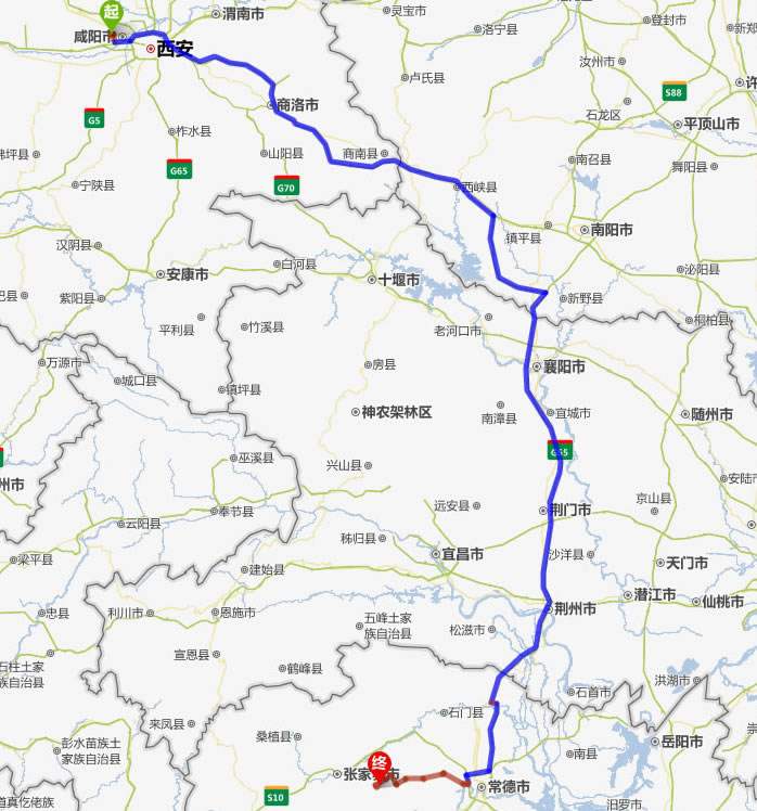 興平去張家界自駕車自助游線路圖全程高速):