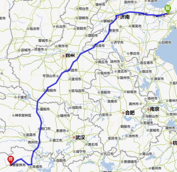 平度去張家界自駕車自助游線路圖全程高速):