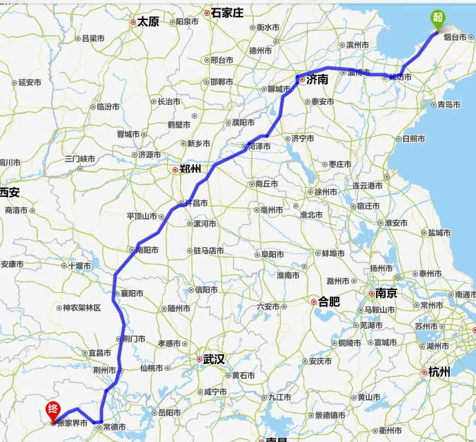 龍口去張家界自駕車(chē)自助游線路圖全程高速):