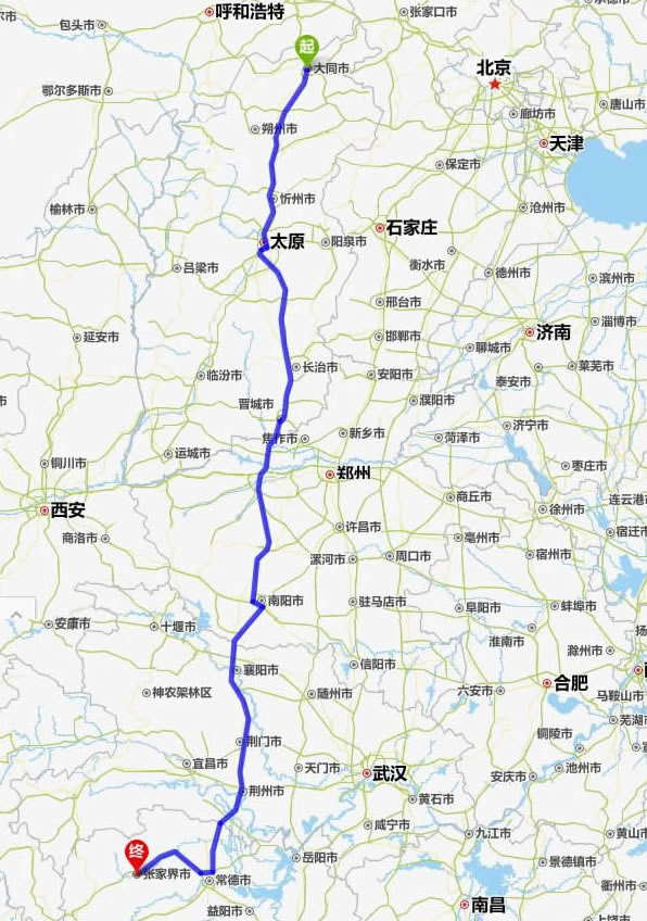 大同去張家界自駕車自助游線路圖全程高速):