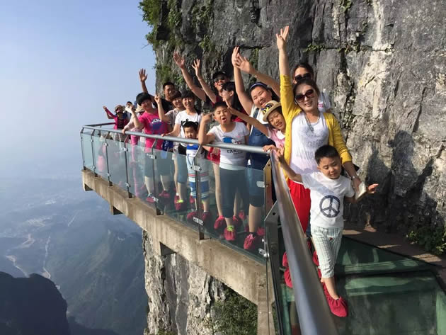 【張家界大峽谷玻璃橋】號稱世界最長、最高的全透明玻璃橋,玻璃橋總長430米、寬6米,橋面距谷底約300米,可站800人。橋面全部采用透明玻璃鋪設,橋中心有全球最高的蹦極臺,整個工程無鋼筋支架,是一種全玻璃結構的橋梁。玻璃橋建成后,將成為世界首座斜拉式高山峽谷玻璃橋;并創(chuàng)下世界最高最長玻璃橋、首次使用新型復合材料建造橋梁等多項世界之最!