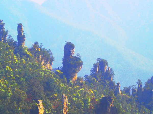 上 午:導(dǎo)游與司機(jī)在機(jī)場或車站、酒店舉牌接游客,然后乘車40分鐘前往【張家界國家森林公園】(門票已含),徒步游覽“世界上最美麗的峽谷”---【金鞭溪景區(qū)】,(包含觀音送子、豬八戒背媳婦、神鷹護(hù)鞭、劈山救母、西游記外景拍攝地、長壽泉、千里相會等景點)。走完金鞭溪后,有兩種游覽方式上至山頂?shù)摹驹医缇皡^(qū)】(其一:可從金鞭溪的千里相會從亂竄坡徒步上袁家界,其二:可從水繞四門乘坐環(huán)保車至百龍電梯下站,然后乘坐世界戶外第一電梯至山頂?shù)脑医,百龍電?2元/人游客自行購買)。